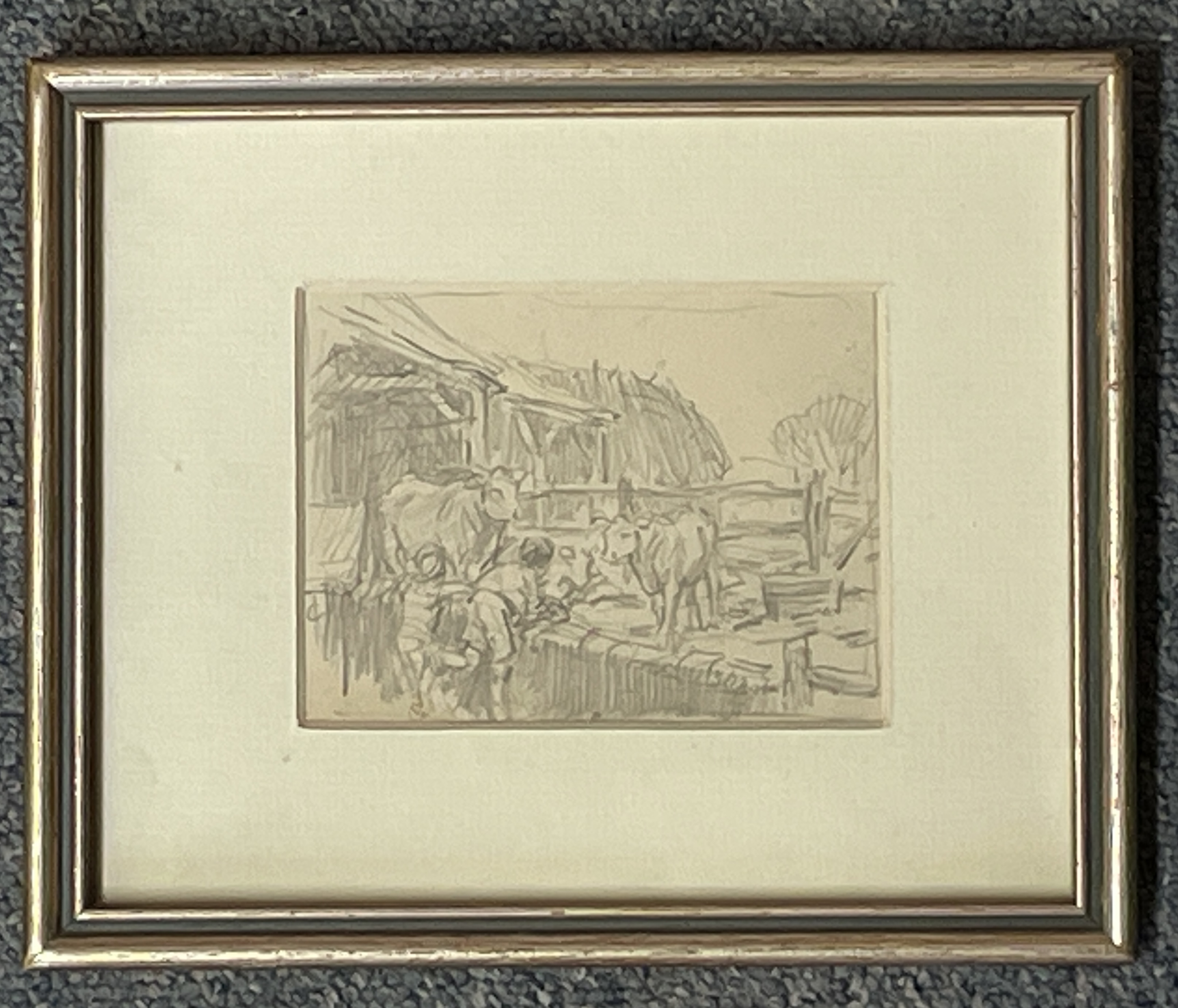 George Soper Children at the Farm Pencil on Paper Frame: 6.75” x 8.5” Image: 3.25” x 4.5” Provenance: Bonhams’s Soper Studio Sale 1992 George Soper was born in May 1870. He was a regular exhibitor at the Royal Academy (48 works) and elected a full member of the Royal Society of Painter-Etchers and Engravers in 1920, with whom he exhibited 80 works. He exhibited widely at many of the principle London and provincial galleries of his day.He died at Harmer Green, Welwyn on 13 August 1942. Both the British Museum and the Victoria and Albert Museum, London, hold examples of his work in their collections.