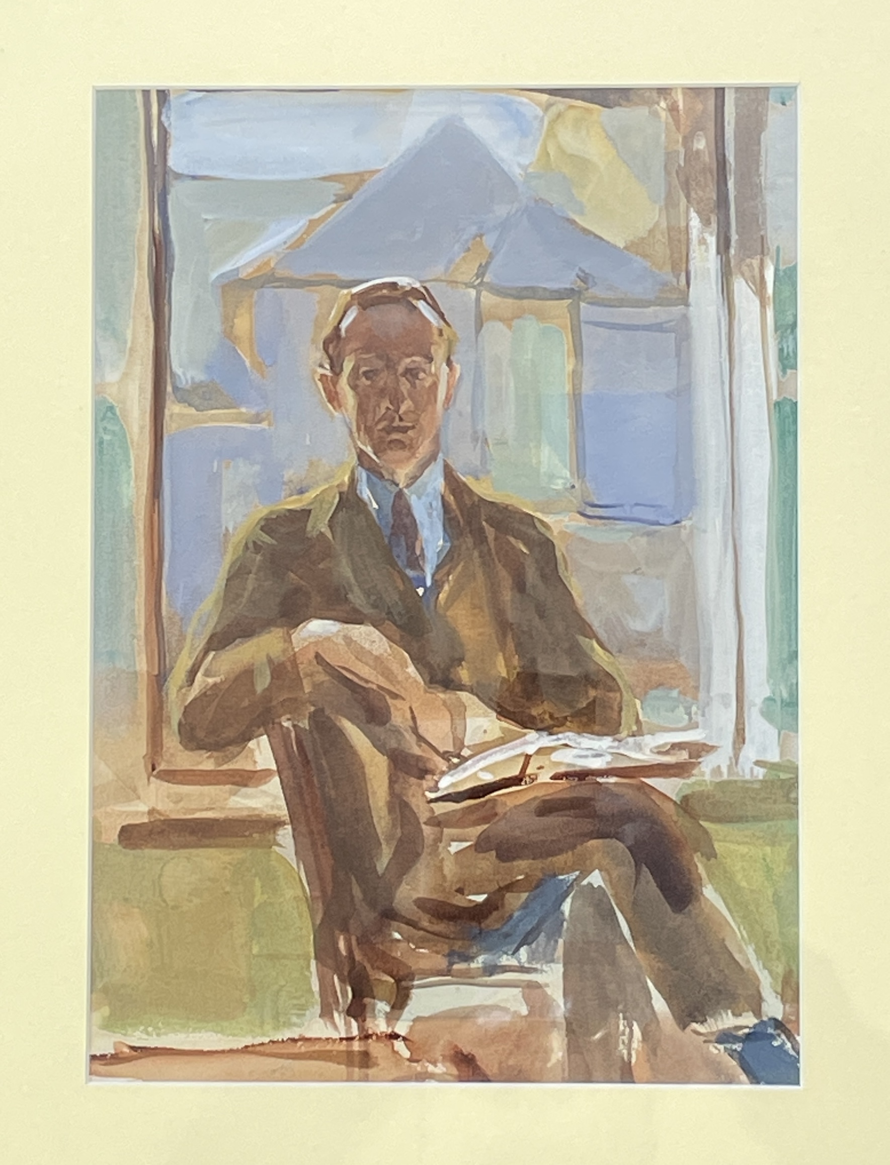 Lord Teignmouth Unknown Watercolour Frame: 21” x 18” Image: 14” x 9.5” Lord Teignmouth Frederick Maxwell Aglionby Shore, later Lord Teignmouth, was an Irish peer who served with notable distinction in the Royal Navy during World War II. After the war he became a doyen of the London fashion trade. He died, aged 61, in 1981.